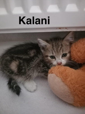 haben, zog Kalani nach ihrer Quarantänezeit auf eine andere Pflegestelle und hatte Gesellschaft von Alva und Alvina. Mittlerweile sind alle drei Kitten zu uns in den Verein gezogen und sie sucht