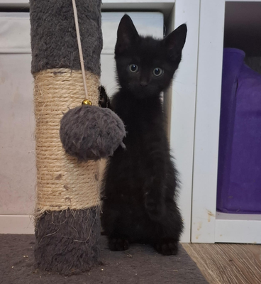 Die Kitten Alva und Alvina wurden uns vom Ordnungsamt in Wettin übergeben und sind aktuell in Handaufzucht. Sie entwickeln sich altersgemäß gut, bei einer routinemäßigen Kotuntersuchung wurden allerdings Kokzidien festgestellt, wogegen sie nun behandelt werden.