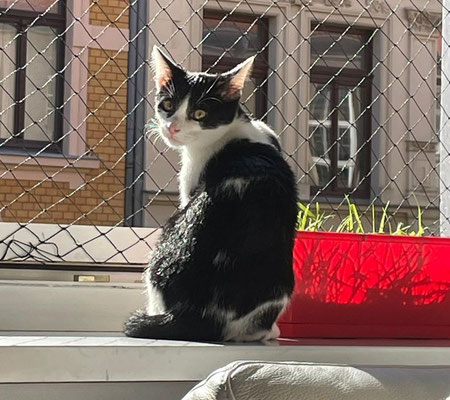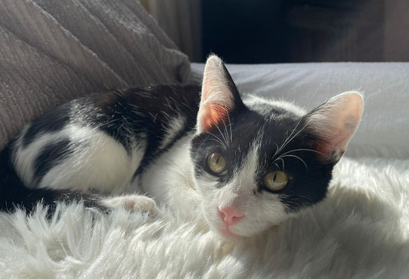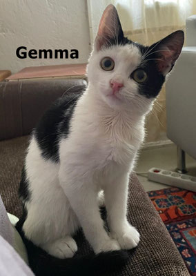 Gemma ist eine kleine Wirbelwind-Nudel – neugierig, verspielt und mit ordentlich Quatsch im Kopf. Am liebsten trägt sie ihre quietschende Spielmaus stolz durch die Wohnung und freut sich riesig, wenn ihre Menschen nach Hause kommen. Dann schnurrt sie laut und schmiegt sich liebevoll an die Beine.