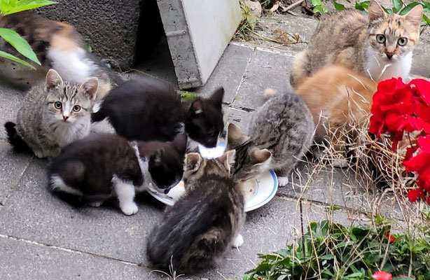 Diese sieben bezaubernden Samtpfoten – Pixel, Panda, Poesie, Payton (alle weiblich) sowie Percy, Pippin und Paris (alle männlich) – stammen aus einer Gartenanlage am Goldberg in Halle (siehe Gruppenfotos), wo wir sie Anfang September sichern konnten.
