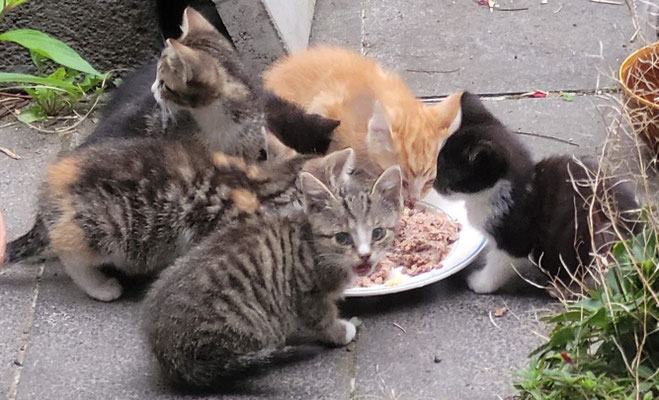 Bis dahin kannten sie den Menschen kaum – nur gelegentlich stellte jemand Futter für sie hin. Entsprechend skeptisch und zurückhaltend waren sie anfangs uns Zweibeinern gegenüber. Um ihnen den Start ins neue Leben zu erleichtern, durften sie auf verschiedenen Pflegestellen einziehen – die Mädels jeweils zu zweit, die Jungs als Trio. Dort konnten sie lernen, dass Menschen gar nicht so schlimm sind und dass das Leben in einer Wohnung viele schöne Seiten hat.