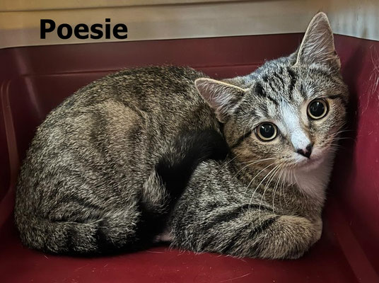 Leider brachte der Tierarztbesuch zunächst keine guten Nachrichten: Es wurden Giardien und später auch Hautpilz festgestellt. Beides wird natürlich fachgerecht behandelt – die Giardien sind so gut wie überstanden, der Hautpilz bessert sich stetig. Fünf der Kitten sind daher aktuell noch bei uns im Verein, wo unsere erfahrenen Kolleginnen sie weiter versorgen. Poesie und Payton, die bislang keine Symptome zeigen, dürfen weiterhin auf ihrer Pflegestelle in Halle bleiben und können dort auch besucht werden.